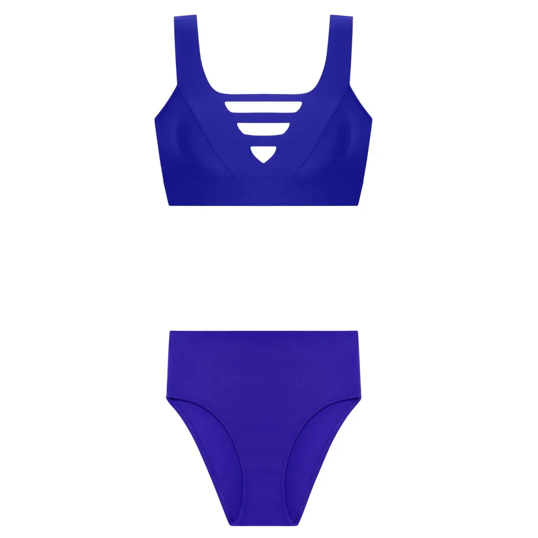 Biquini bralette de Pain de Sucre. Model Bessy. Disseny de moda amb escot en V. Tires i banda inferior amples i ajustades. Copes reforçades que garanteixen una bona subjecció. Calceta de tall alt que es pot plegar i convertir en petita. Còmode i elegant.