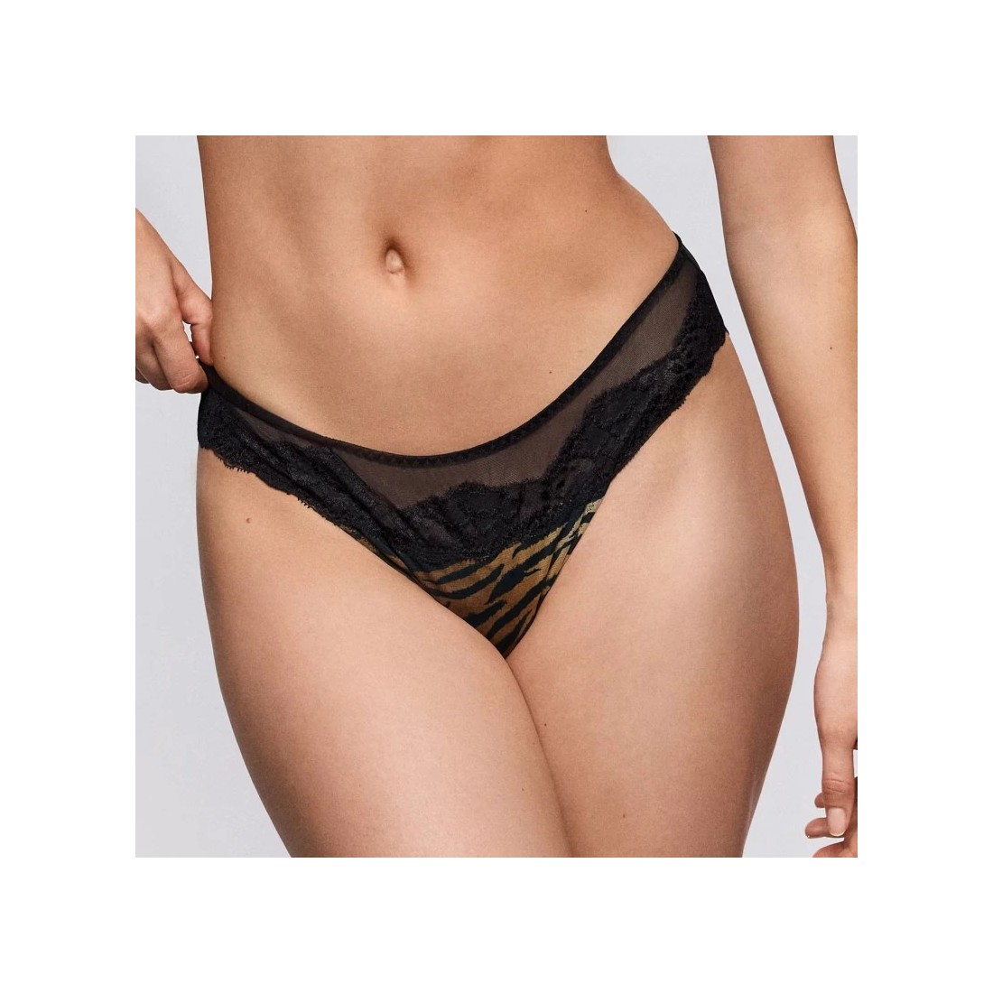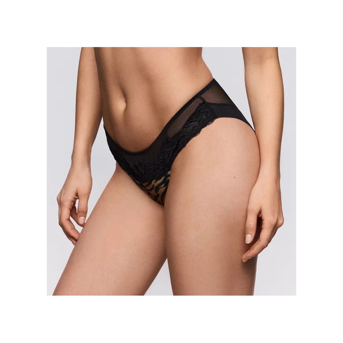 Calceta slip de la marca Sarda. Col·lecció Bremer amb la referència 3500750. Disseny de moda amb cobertura perfecte. Transparències a la part posterior. Estampat animal print a contrast amb el color negre.
