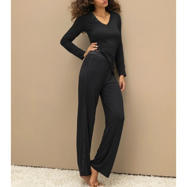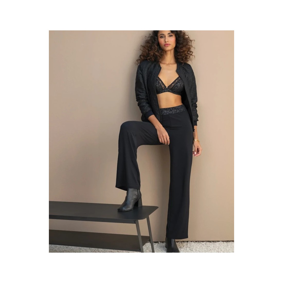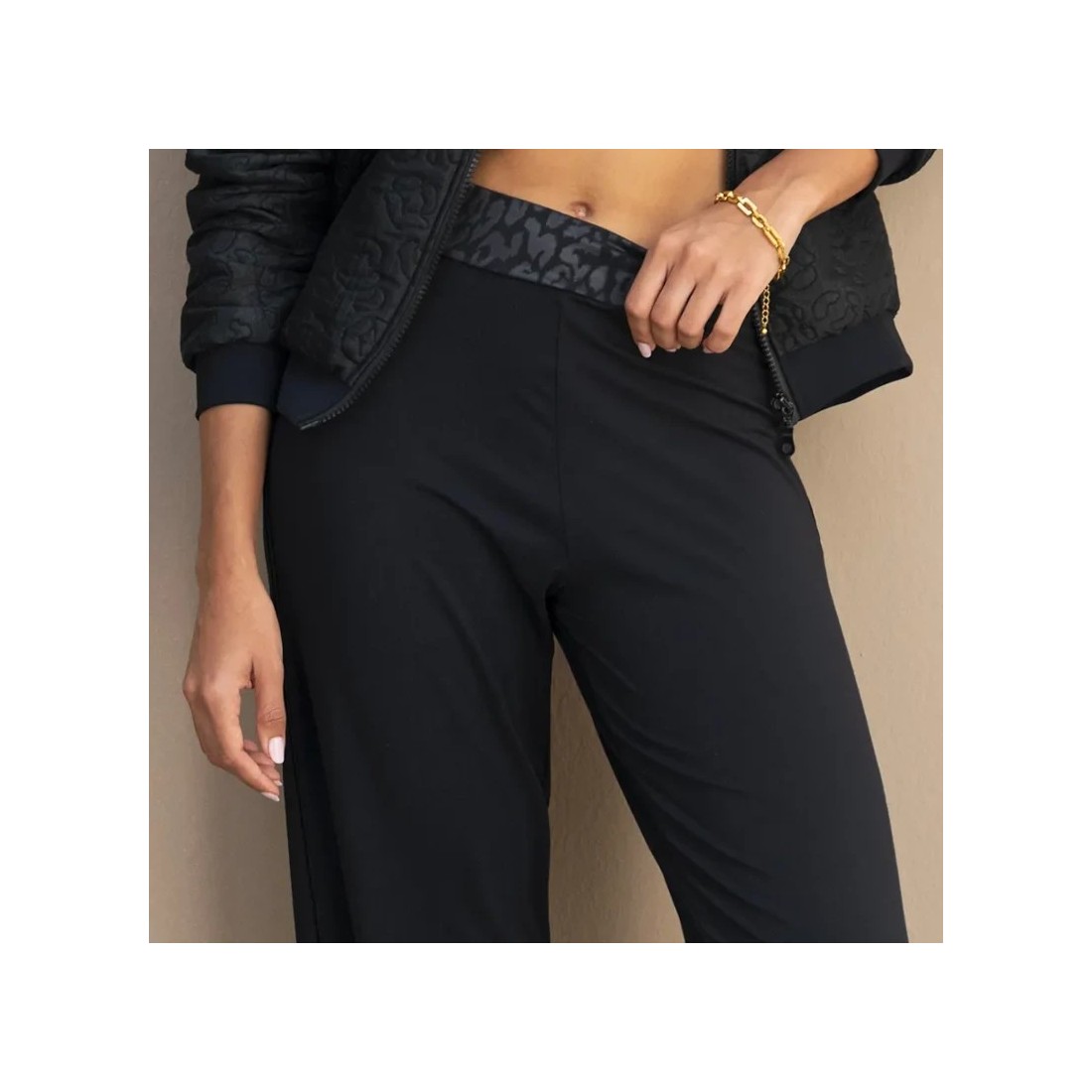 Pantaló de moda de la marca Antigel. Col·lecció Sensualite Fauve amb la referència ELJ0038. Disseny de modal, llis i elegant. Cintura de punt estampada.