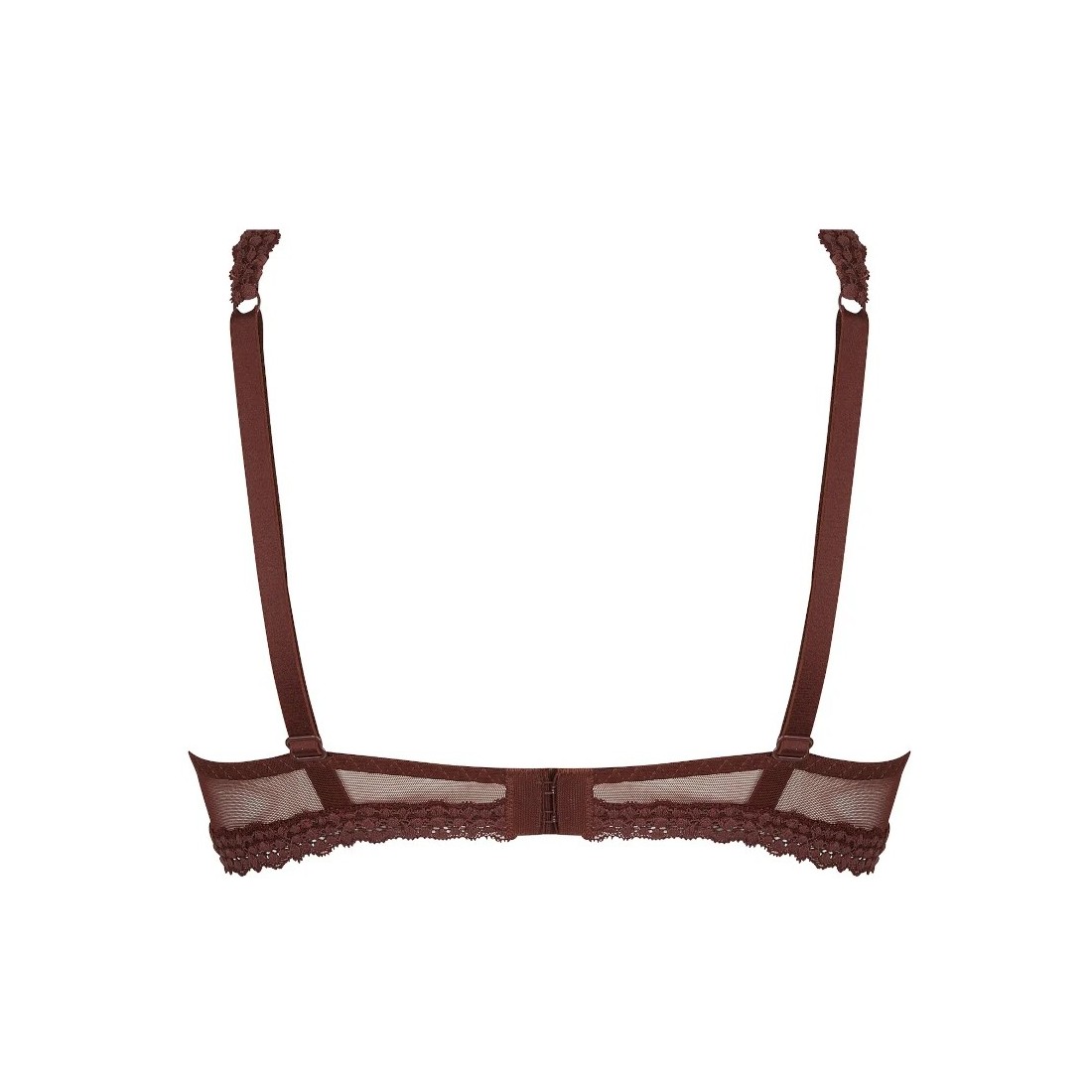 Sostenidor de la marca Antigel. Col·lecció Exquise En Dentelle amb la referència ECJ7047. Disseny de moda amb foam parcial a les copes i cèrcols. Escot pronunciat, sexi i còmode. Sostenidor amb encaix i el baix de banda sobre tul. Joia decorativa al centre. Tires còmodes i ajustables.