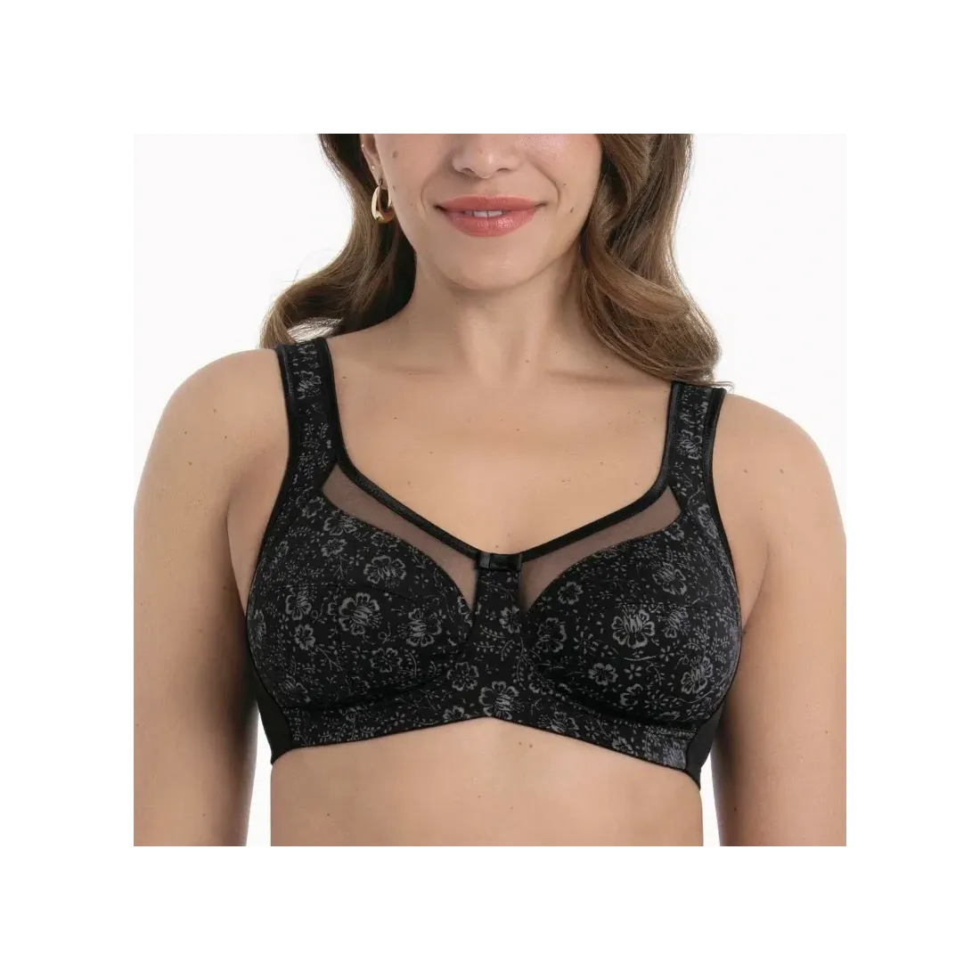 Sostenidor sense cèrcols de la marca Anita. Col·lecció Clara Art. Referència 5873. Sostenidor còmode i amb bona subjecció. Copes dividides en tres seccions, una banda lateral modeladora i una banda sota el pit anatòmica. Franges semitransparents a l’escot. Tires ajustables, amples i còmodes que s’adapten a la perfecció. Disponible en dos colors; Antracita i negre.