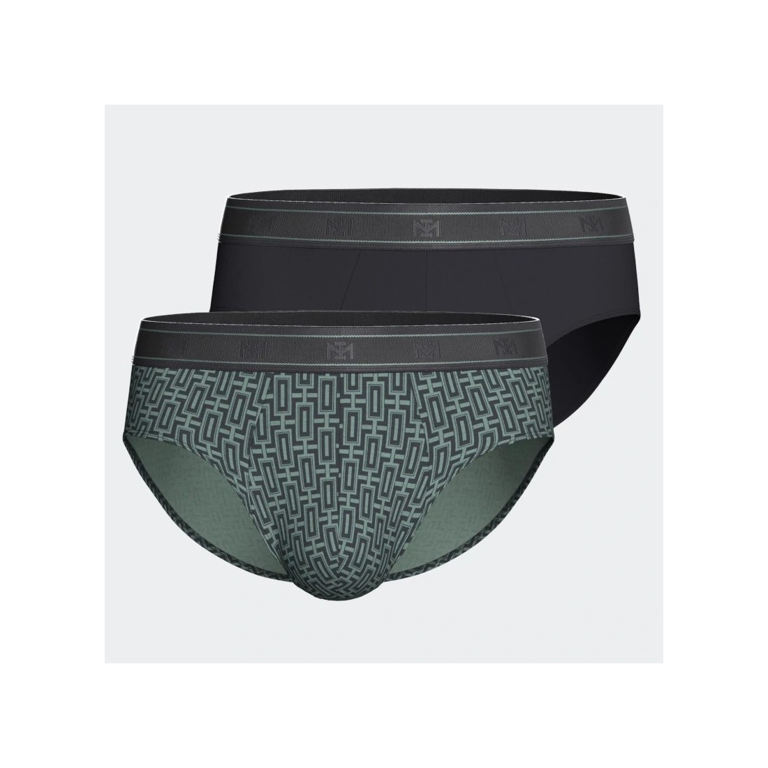 Pack de 2 calçotets slip de la marca Impetus. Referència IM1123N73P2. Un slip és llis i l’altre té un estampat geomètric. Cintura elàstica. Calçotets de modal i cotó que garanteixen un ajust còmode i pràctic.