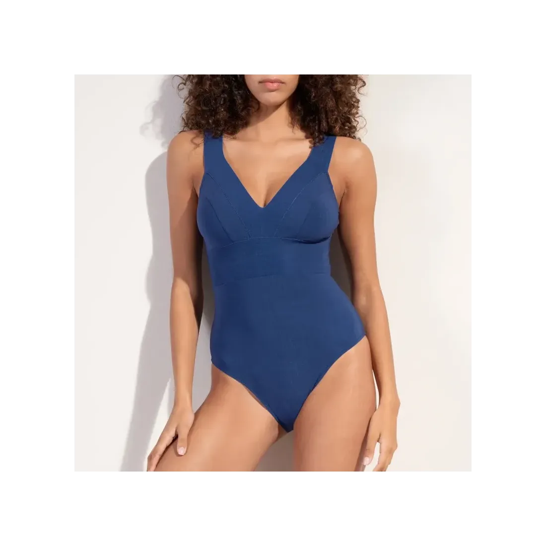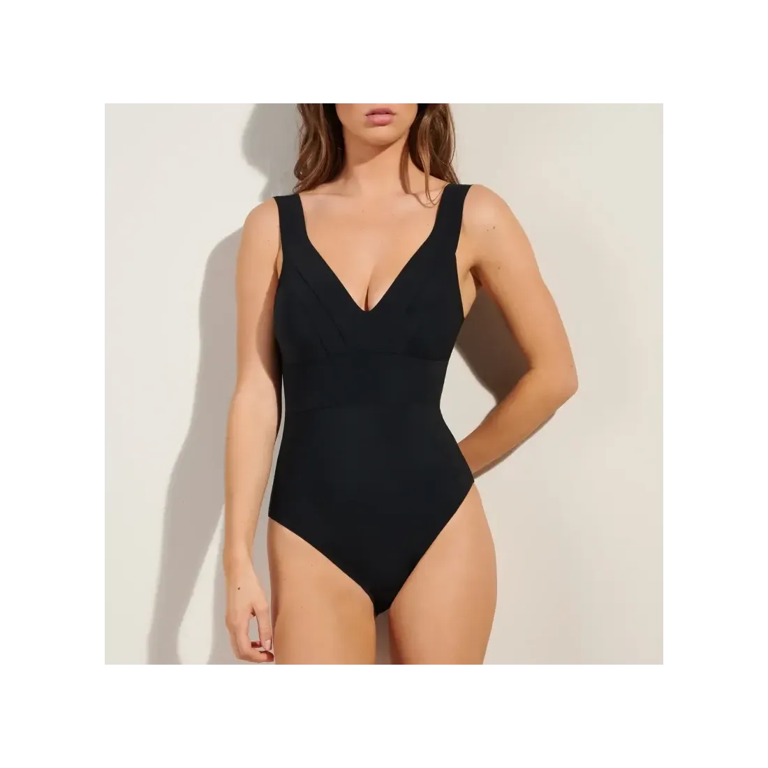 Bañador de la marca Pain de Sucre. Modelo Pipper con escotes en V por delante y por la espalda. Tirantes y bandas anchas debajo del pecho ofreciendo una buena sujeción. Acabado cortado al vivo.
