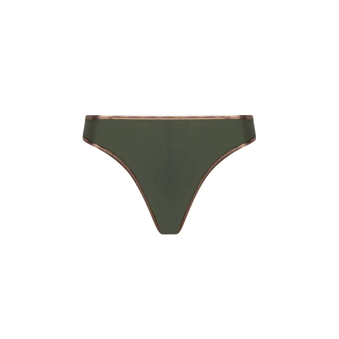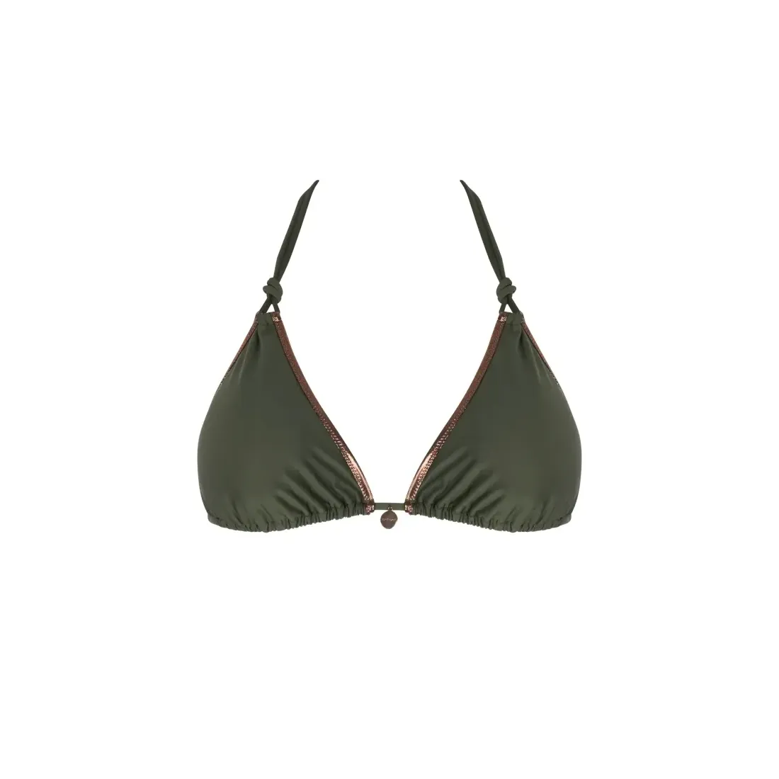 Bikini cortina de la marca Antigel. Modelo La Smartissime con la referencia EBB2719. Diseño de moda con forma triangular y foam. Es ligero y cómodo hecho con malla lisa. Tirantes finos y dobles. Ribete dorado. Braguita slip.