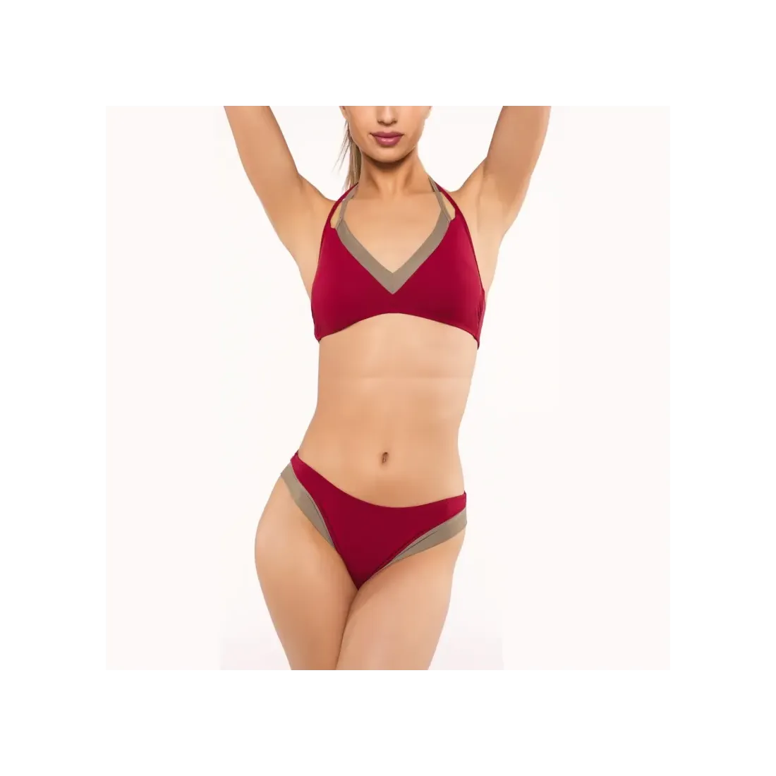 Bikini Red Point. Modelo Antao. Bikini de moda con línea lisa bicolor que transmite el efecto de llevar bikinis sobrepuestos.
