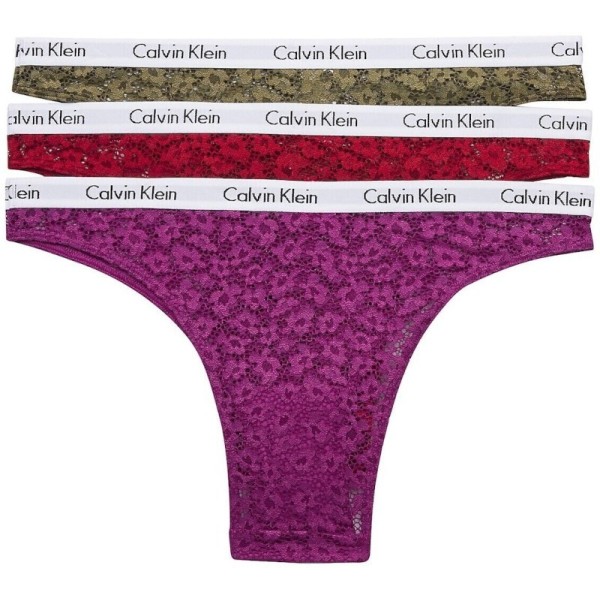 Pack de 3 tangas brasileras de la marca Calvin klein. Diseño de encaje. Referencia QD3925E con colores diferentes.
