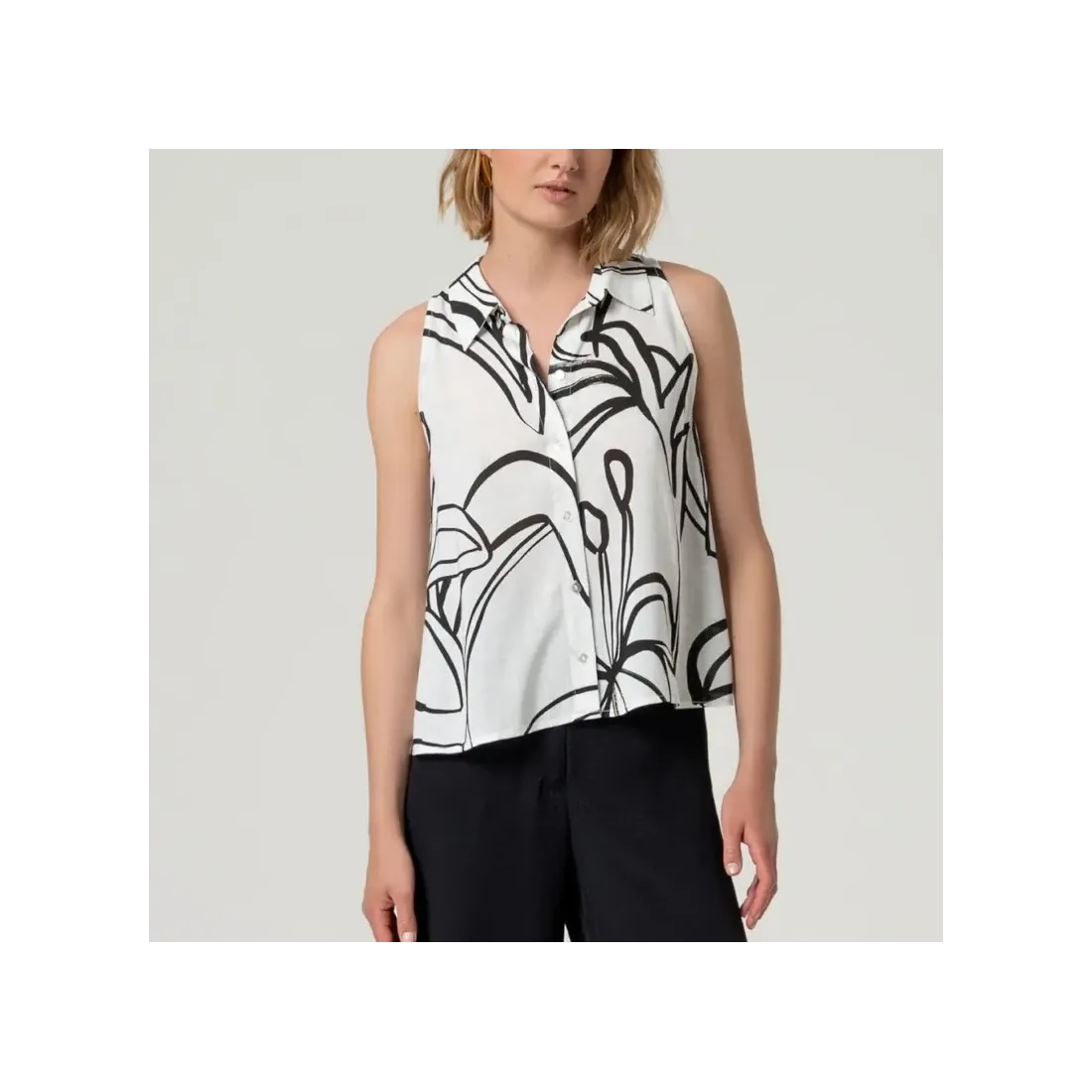 Camisa sin mangas de Surkana. Referencia 526UTFO123. Camisa con apertura completa de botones y diseño evase.
