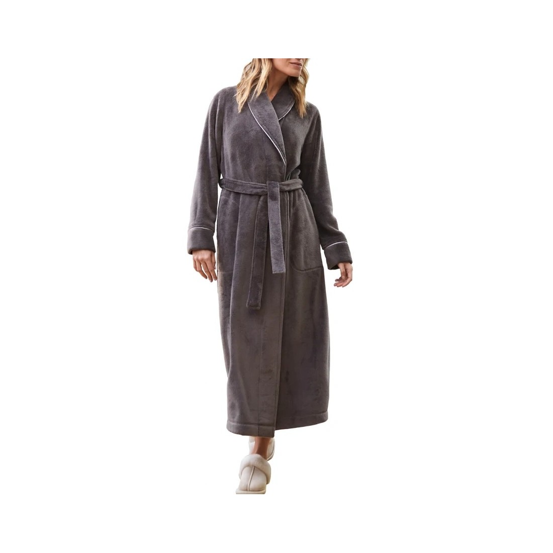 Bata larga de la marca Barandi. Modelo BI25-08. Diseño elegante y cálido con un tacto suave y agradable. Cinturón externo.