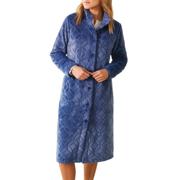 Bata larga de la marca Barandi. Modelo CLASS25-3. Bata larga, con botones y cinturón externo para un mejor ajuste. Es una bata caliente, cómoda y perfecta para estar por casa con una mejor temperatura.