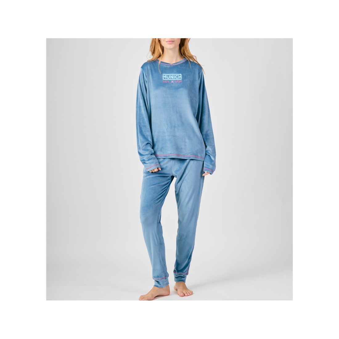Pijama para mujer de la marca Munich. Referencia FP0100. Diseño minimalista. Pijama liso, con costuras a contraste y la imagen de Munich en el centro de la parte superior.