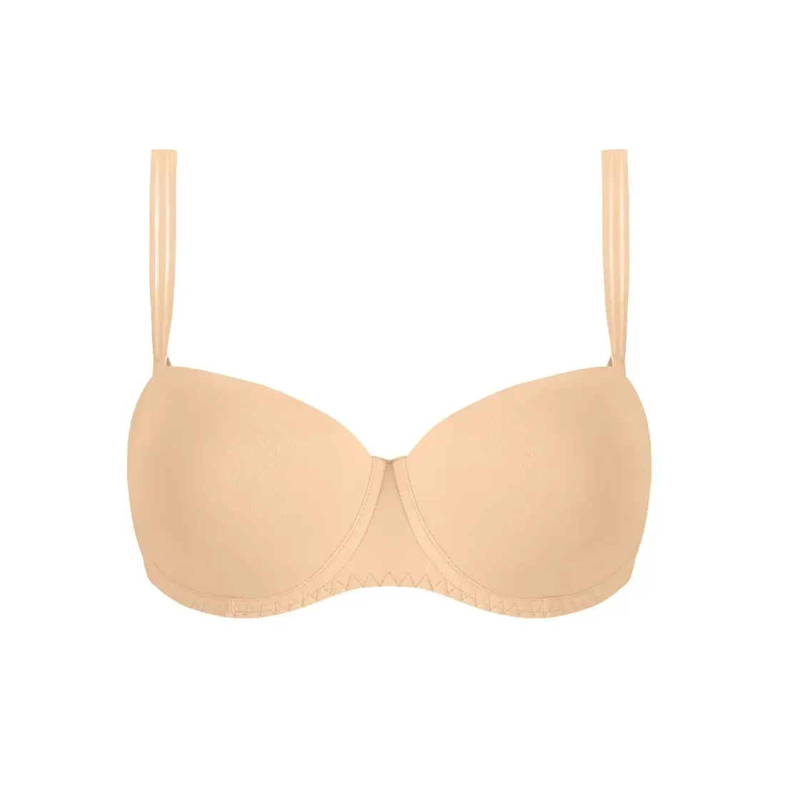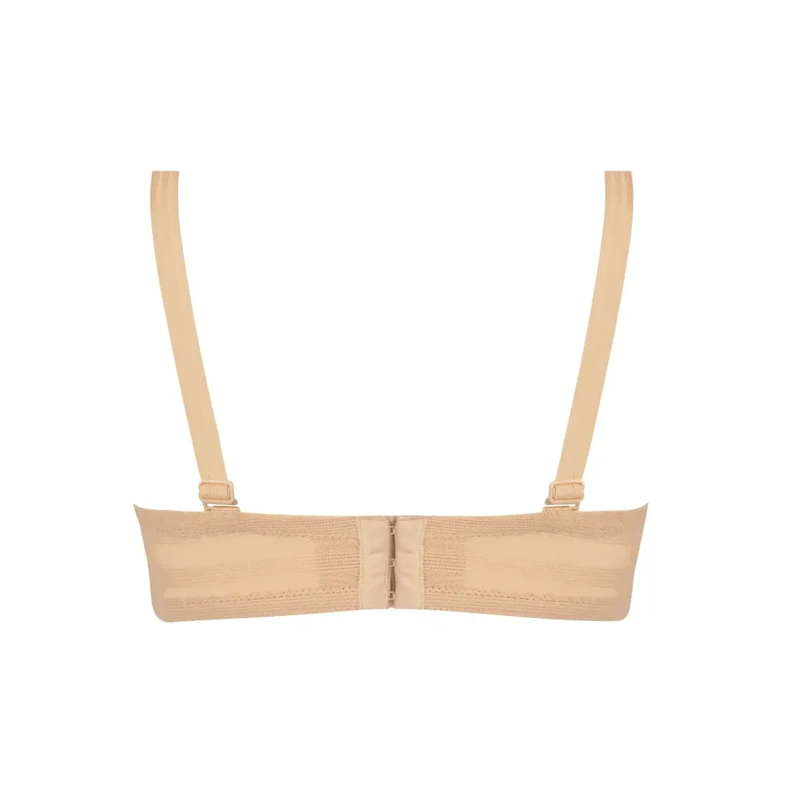 Sujetador con foam de Antigel. Colección New Apesanteur. Referencia FCJ5614. Sujetador con copas en forma de bralette bandeau. La parte central es de punto y la espalda es con acabado vivo y rayas. Tirantes ajustables, decorativas y desmontables.